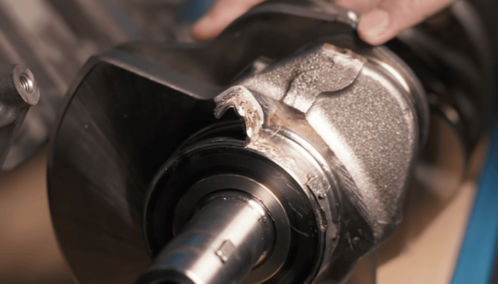 Dieses sitzt außer Flucht zu den übrigen Lagern. Die minimale Abweichung führt zu ungleicher Belastung, erhöhtem Abrieb und letztlich zur Schwächung des Pleuellagers. Wenn Späne aus dem beschädigten Hauptlager in den Ölkreislauf geraten, folgt bald das hörbare Ergebnis: Klopfen, Leistungsverlust, Pleuellagerschaden – Motorschaden.